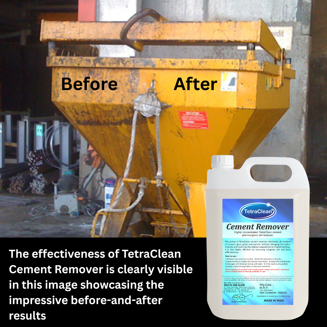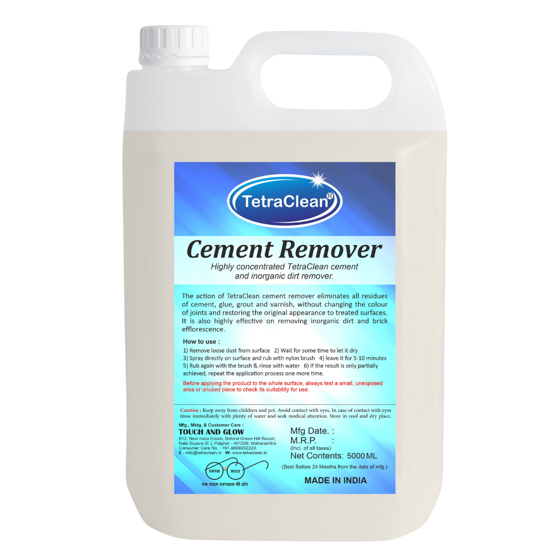 TetraClean Cement Remover (5 Litres) is a highly concentrated cleaning solution specially formulated for large-scale cleaning needs. It effectively breaks down and removes stubborn cement residue, dried grout, glue, varnish, brick efflorescence, and inorganic dirt without damaging tiles, stone, or surface joints. Ideal for construction sites, renovation projects, flooring contractors, or deep home cleaning, this powerful formula restores the natural shine and appearance of treated surfaces. Easy to use and highly effective, it delivers professional-grade cleaning results with every application.
